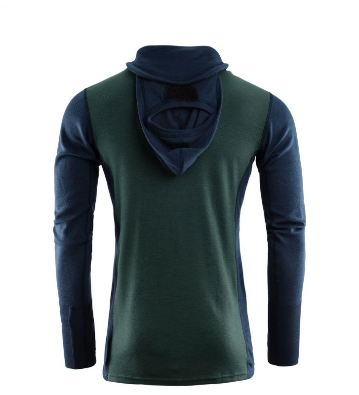 Aclima WarmWool Hoodsweater w/zip M’s Navy Blazer/Green Gables/Coastal Fjord is een merinowollen basislaag met een aanpasbare kraag. Een basislaag die je gemakkelijk kunt aanpassen aan het weer op het water!