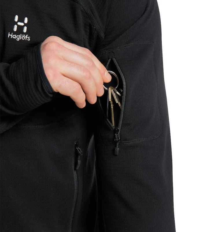 Haglöfs Wool Blend Hood Men True Black is een warme en isolerende hoodie met verschillende handige zakken en comfortabele duimgaten. Een verwarmende mid-layer met genoeg eigenschappen om als bovenkleding te dragen tijdens het vissen en wandelen!